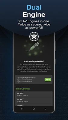 Antivirus AI ni kingavirusi chenye AI na virus cleaner kwa Android. Hulinda simu yako kwa wakati halisi, ikigundua na kuondoa virusi, programu hasidi, ransomware, spyware, adware, na vitisho vipya. Injini yake ya uchanganuzi ya dual-engine huunganisha saini na AI kujikinga na vitisho visivyojulikana.
