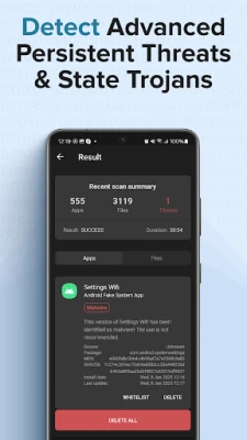 Antivirus AI hufanya kazi bila kuchoka kulinda simu yako kwa uchunguzi endelevu, ikikagua na kutoa tahadhari dhidi ya vitisho vya kila aina—hata vile visivyojulikana—kupitia uchambuzi wa kina wa tabia ya programu. Iwapo kifaa chako kitaathirika, Antivirus AI inageuka kuwa kiondoa virusi makini, ikiweka karantini na kuondoa programu hasidi kwa hatua chache tu. Inakagua kwa uangalifu programu mpya au faili za APK unazosakinisha kutoka vyanzo mbadala, na hukupa uwezo wa kukagua ruhusa za programu zenye mashaka kabla ya kuziondoa. Hata baada ya kusafisha, unaweza kurudia skani ili kuhakikisha usalama kamili, kumbuka kuwa lengo kuu la Antivirus AI ni usalama wa vitisho, si usafishaji wa cache au faili zingine zisizo hatari.
