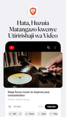 Je, unatamani uzoefu wa mtandaoni ulio huru kutokana na usumbufu wa matangazo na ufuatiliaji wa siri? Anzisha safari mpya ya mtandao na Brave, kivinjari kinachoweka faragha yako mbele na kukuwezesha kuvinjari kwa kasi ya ajabu. Kwa mara ya kwanza kabisa, Brave imekuletea mratibu wako binafsi wa AI, Brave Leo, aliyejengwa ndani kabisa ya kivinjari. Muulize maswali, tafsiri lugha mbalimbali, na upate majibu ya haraka na sahihi, bila kuhofia faragha yako. Furahia uzoefu wa kuvinjari ulioboreshwa, usio na bughudha, na salama zaidi kuliko hapo awali.