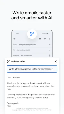 Pata arifa za papo hapo za barua pepe mpya kupitia kituo cha arifa, beji, na chaguzi kwenye skrini iliyofungwa. Tafuta barua pepe zako zilizopita haraka ukitumia matokeo ya papo hapo, utabiri unapoandika, na mapendekezo ya tahajia. Kwa ujumuishaji usio na mshono na anwani zako za Google au za simu yako, majina ya wapokeaji hukamilishwa kiotomatiki unapoandika. Jibu mialiko ya Kalenda ya Google bila kuacha programu, na hata panua uzoefu wa Gmail kwenye saa yako mahiri ya Wear OS kwa muhtasari wa haraka wa kikasha chako. Ikiwa sehemu muhimu ya Google Workspace, Gmail inawezesha mawasiliano, ubunifu, na ushirikiano bora zaidi kwa ajili yako na timu yako.