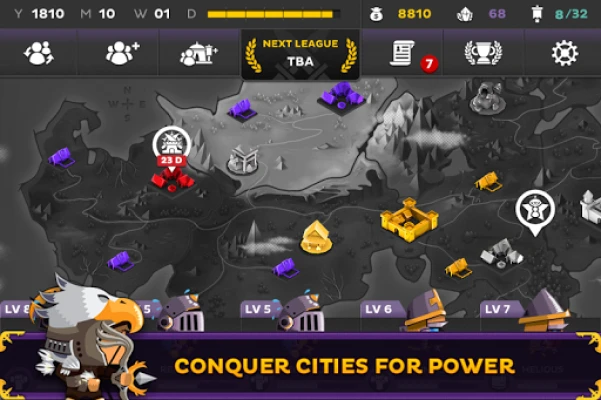 Lakini safari yako haishii kwenye medani za vita pekee. Panua himaya yako kwa kuteka maeneo mapya, ukikusanya rasilimali muhimu zitakazokusaidia kuboresha vituo vya mafunzo na kuwapandisha vyeo wanajeshi wako katika madarasa mapya na yenye nguvu zaidi. Fungua maeneo yaliyofichwa, jibu wito wa mapambano ya pembeni, chunguza shimo la wafalme lililojaa hatari na mafumbo, na shiriki katika mashindano magumu kama Battlethon. Kila uamuzi wa rasilimali unahitaji hekima, kwani utaunda hatima ya ufalme wako na kuimarisha nguvu ya jeshi lako.